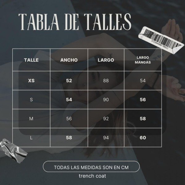 Talle xs al l (pueden visualizar tabla de talles con medidas en cm)